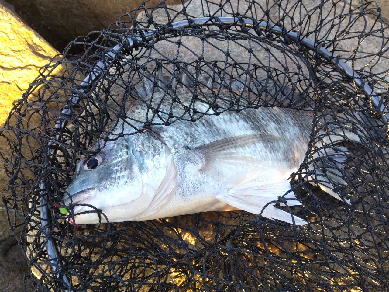 諦めてアサリむき身で投げに変更したらいきなりキャッチ。これはまぐれや。出来過ぎてる。ていうかエサってやっぱすごい