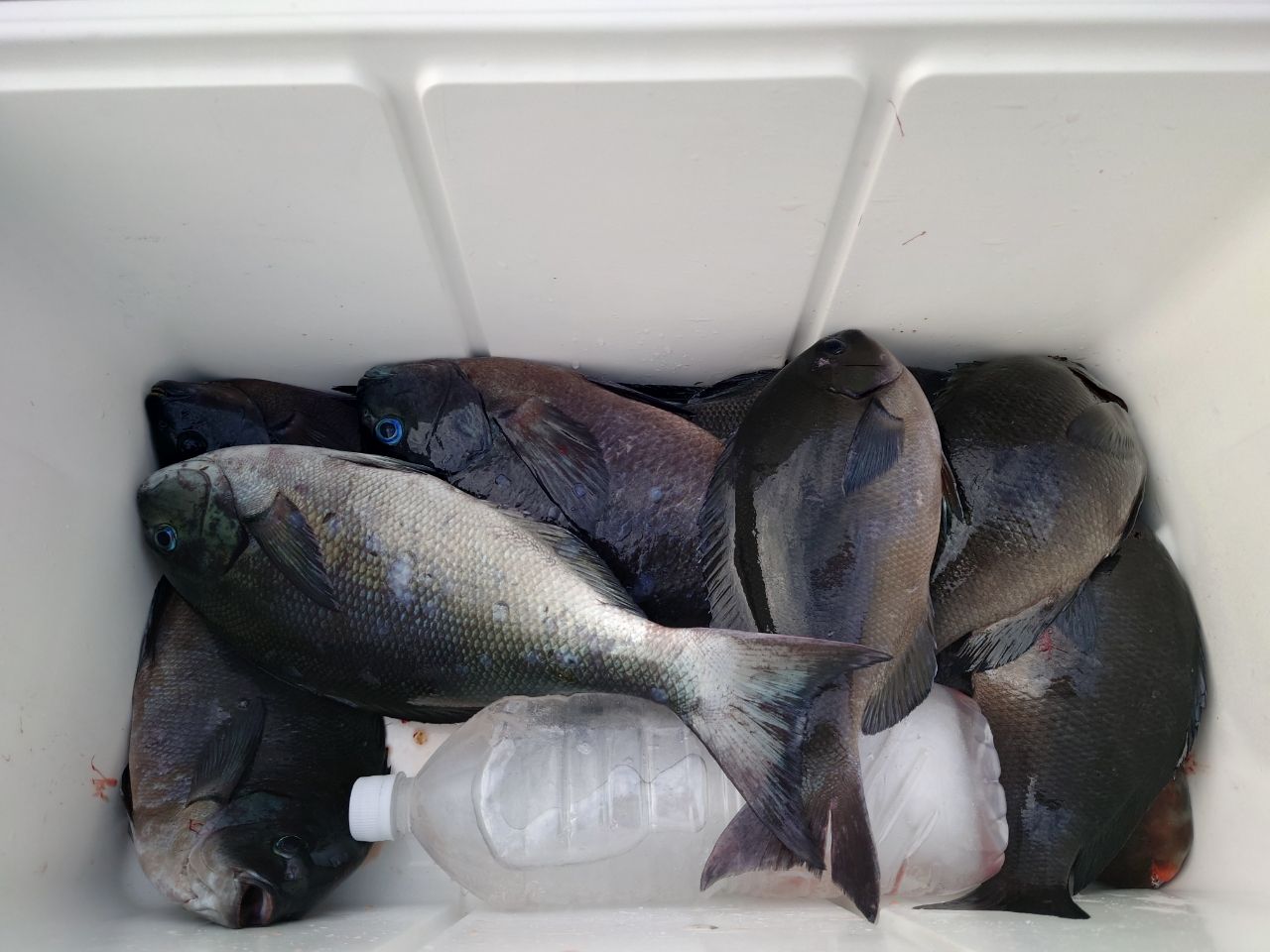 上げ潮に変わり、回収30分前からようやくアタリが出だし、尾長と口太半々づつで9枚確保。