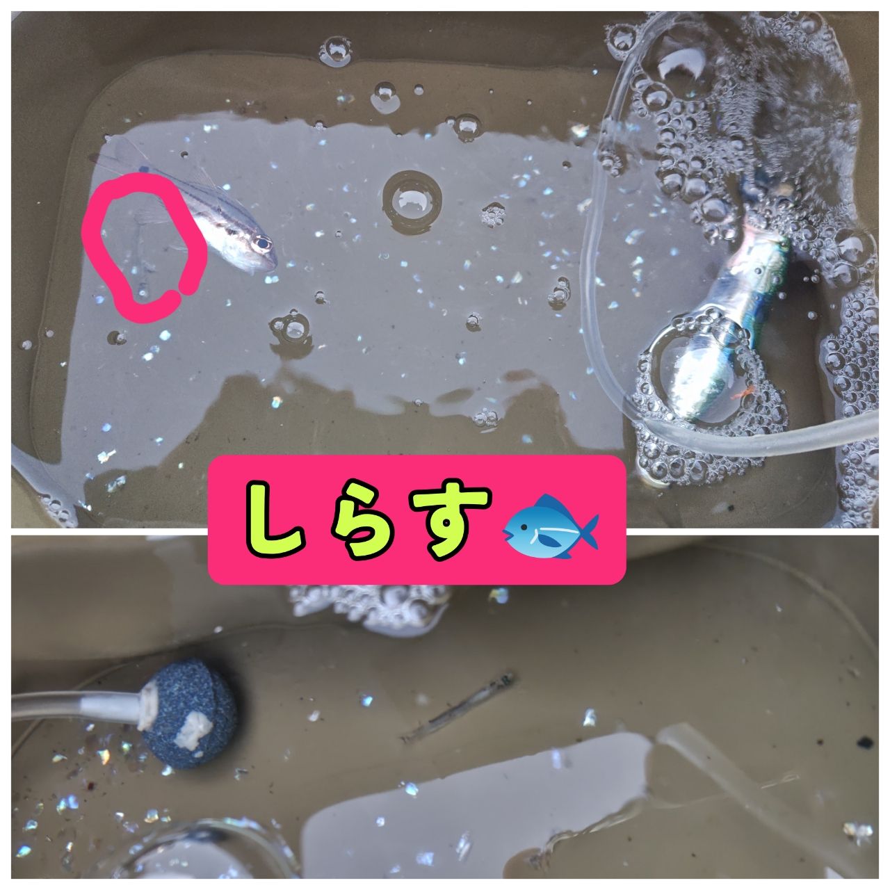 ②バケツ🪣に入った超マイクロカタクチイワシ×3