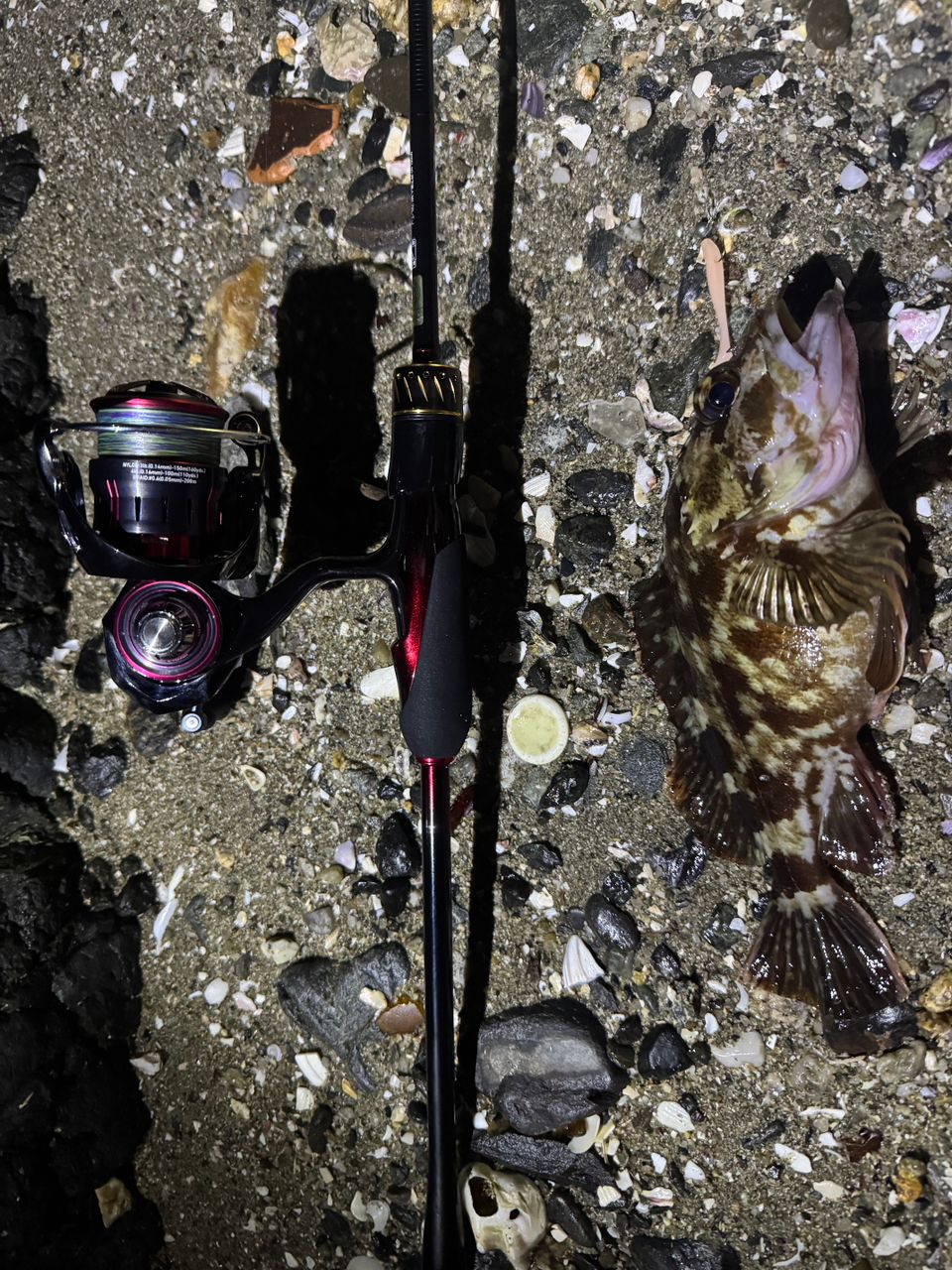 防波堤から磯場に移動してから月下美人 ビームフィッシュ(レッドグロー)を使用してボトムを攻めてちょっと大きなカサゴ🐟ちゃんとタケノコメバルが来てくれました😊