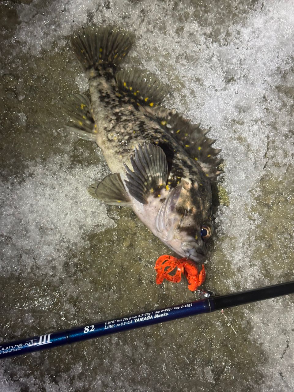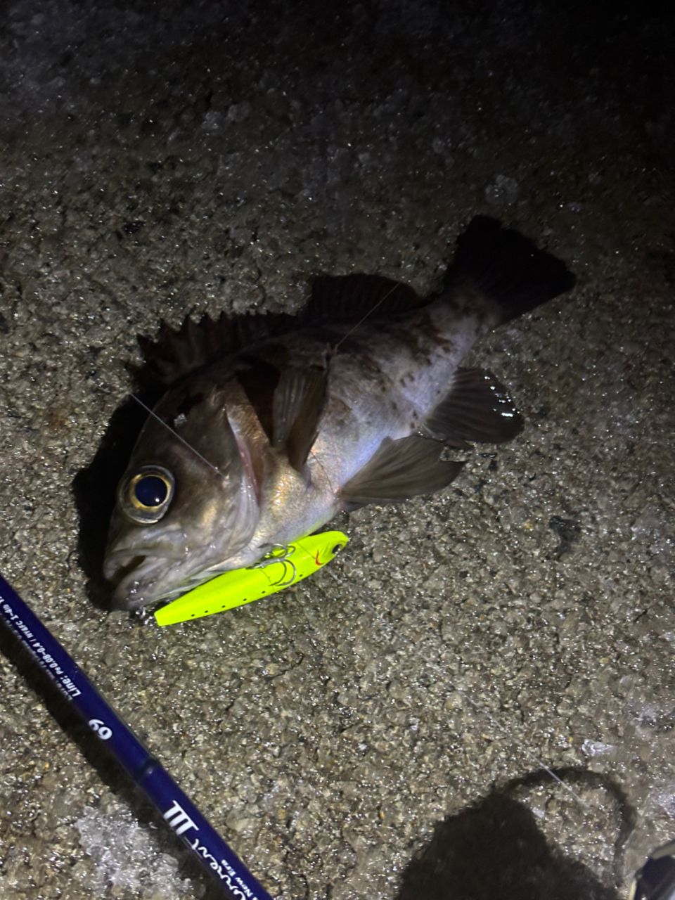 その後ワームでねちねちしてるとメバリングタックルが根掛かりしてリーダーを結び直す気力もなかったので、ライトロックタックルでボトムべったりクレイジーフラッパーだとさすがにムラソイ君のみでした。