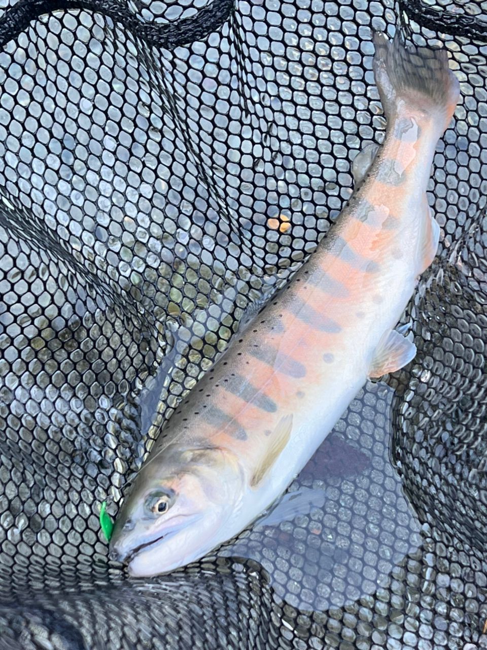 水がメチャクチャ綺麗なのと魚影の濃さにビックリ👀ニジマスだけでなく5種類くらいの魚種を放流しているとのこと。ワクワクしてハイバーストを投げてみると1投目からヤマメをキャッチ❗️多分初めて釣りました。メチャキレイ😍