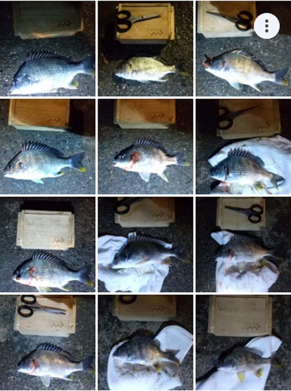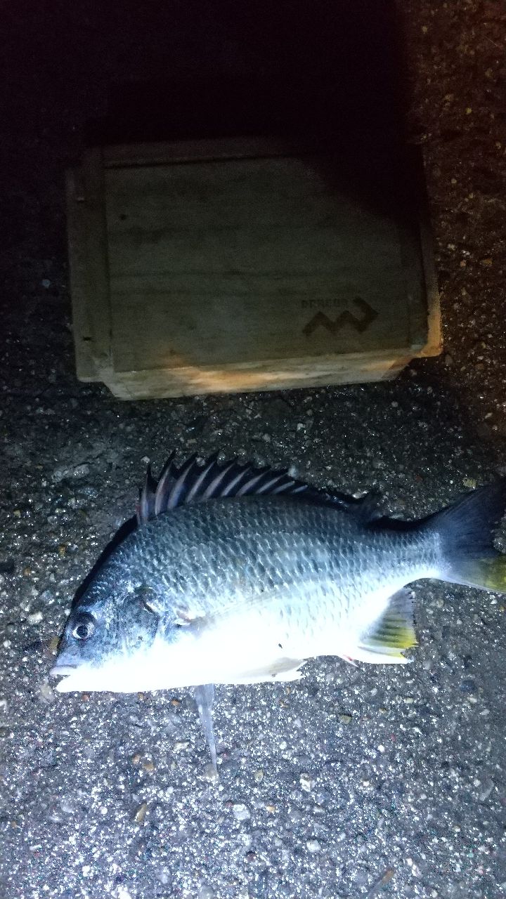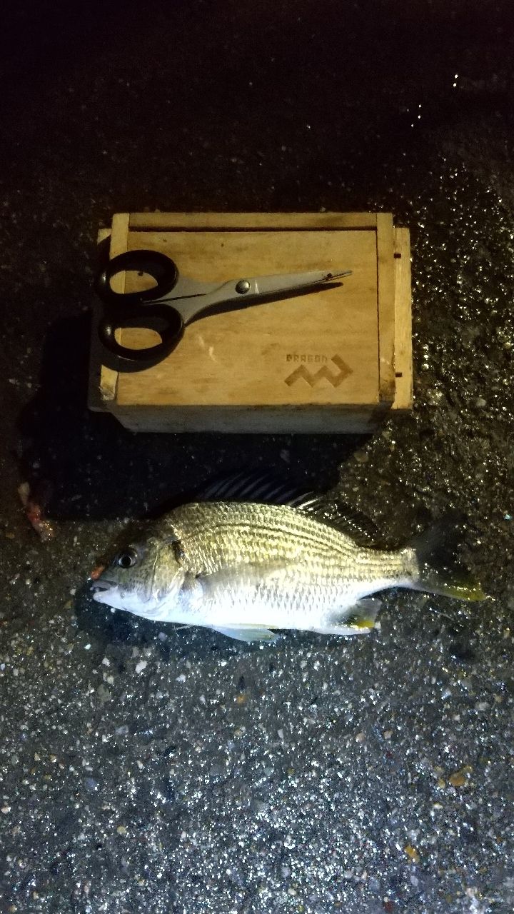 早速3号機に釣り座を構え本虫で打ち返します。辺り一面ボラだらけのため、ボラ当たりが出て釣りになりません😭 しかし、日が落ちて辺りが暗くなると様子が変わってきました。奥、真ん中、足下、どこに投げても、本虫、ボケ、どのエサでもキビレが当たってきます😅 魚体の割にはいい引きで楽しいのですが、本命はクロダイの為物足りません😓 結局、23時の納竿まで12匹のキビレが釣れました😆
