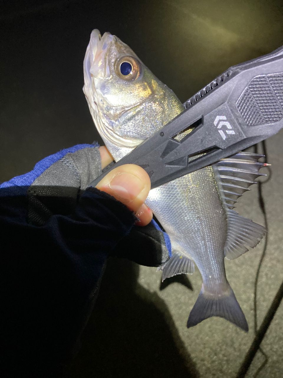 強風向かい風で常夜灯下にベイトが溜まるんじゃないかと予想すると、同僚がそこでバッチリチーバスちゃんゲット😁読み通りだったのでメチャクチャ嬉しかったですよ!