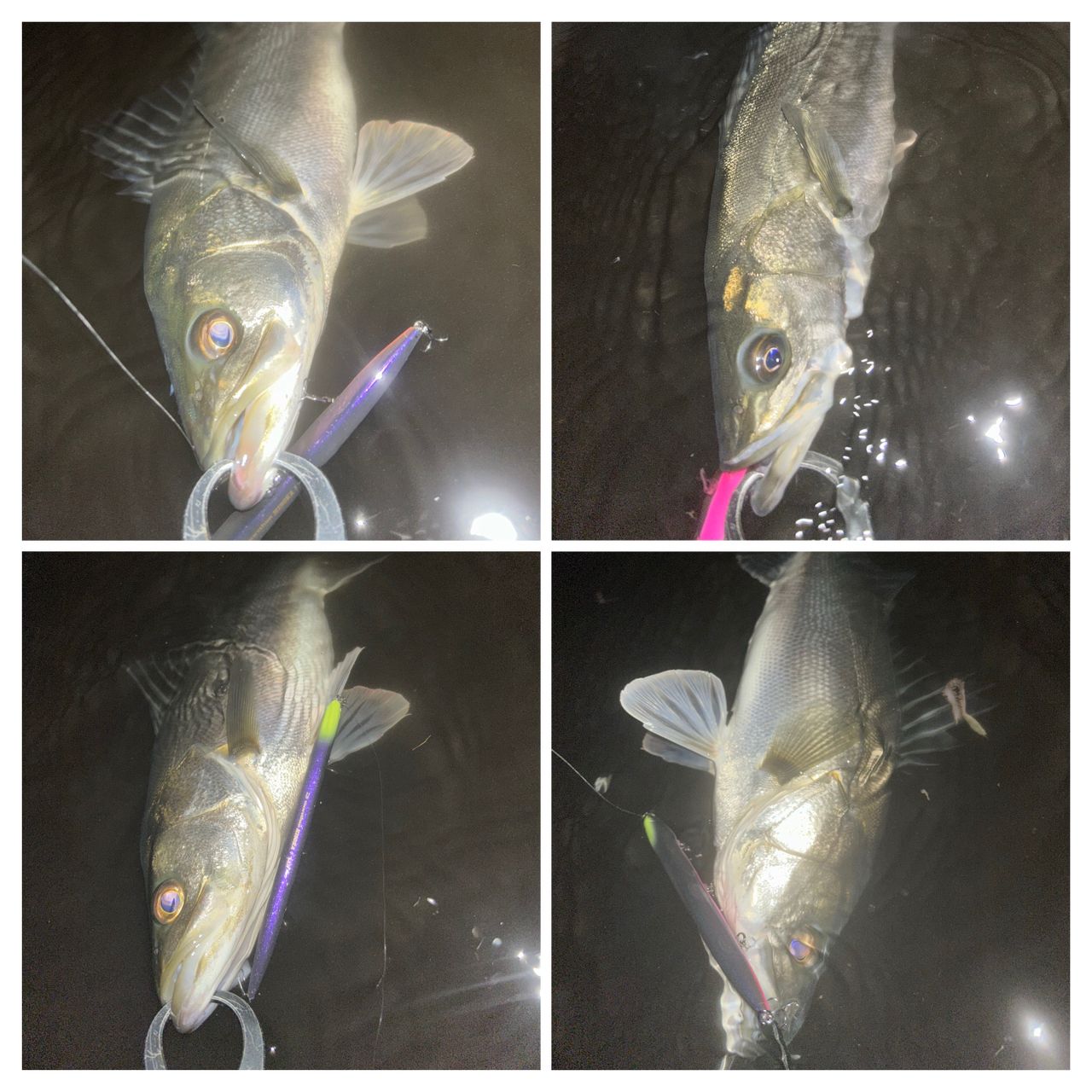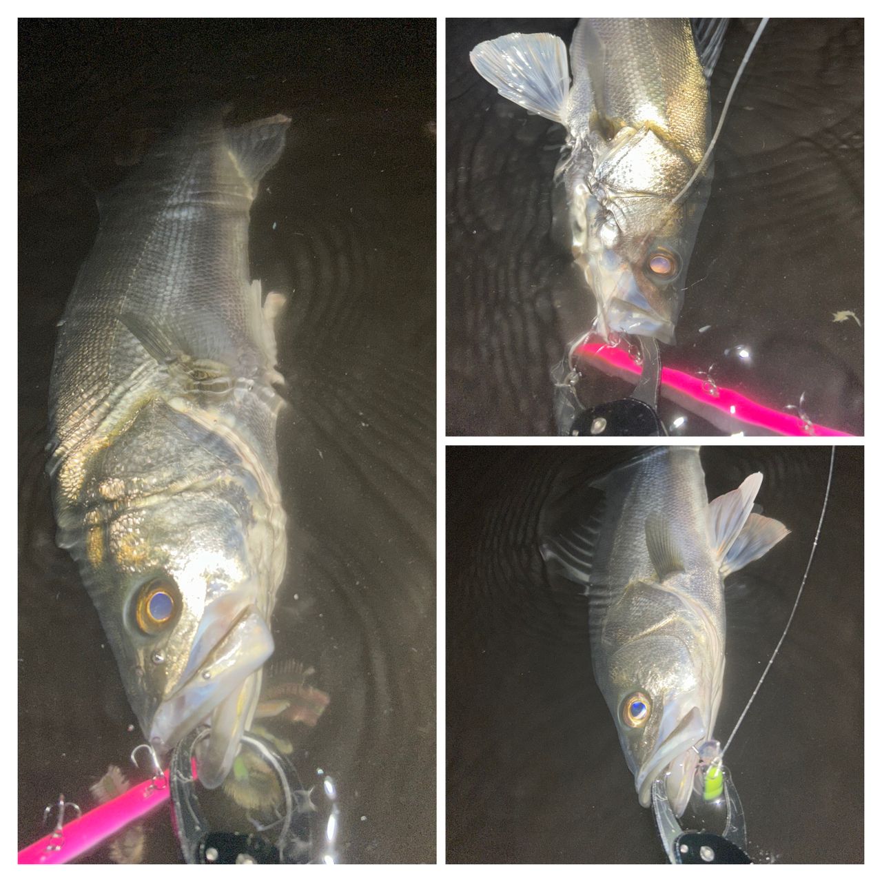 エントリー時からライズしていたので、ヒソカ120.150でサイズを変えながら探っていると🎣ナイスサイズなスズキを1匹とフッコ7匹🙂↕️遊んでくれてありがと〜🙇