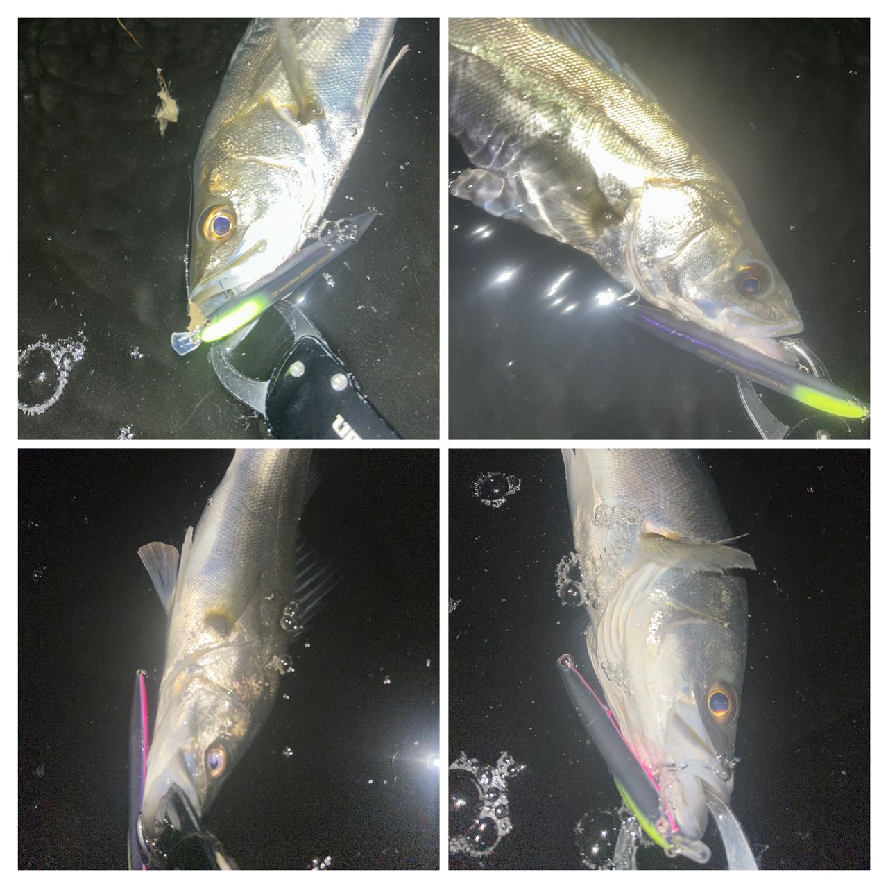カッター90からスタート▶️流れを探りながら巻いてると🎣カッターで反応があったのでヒソカ120.95でサイズを変えながら流すと🎣セイゴフッコサイズを計9匹🙂↕️
