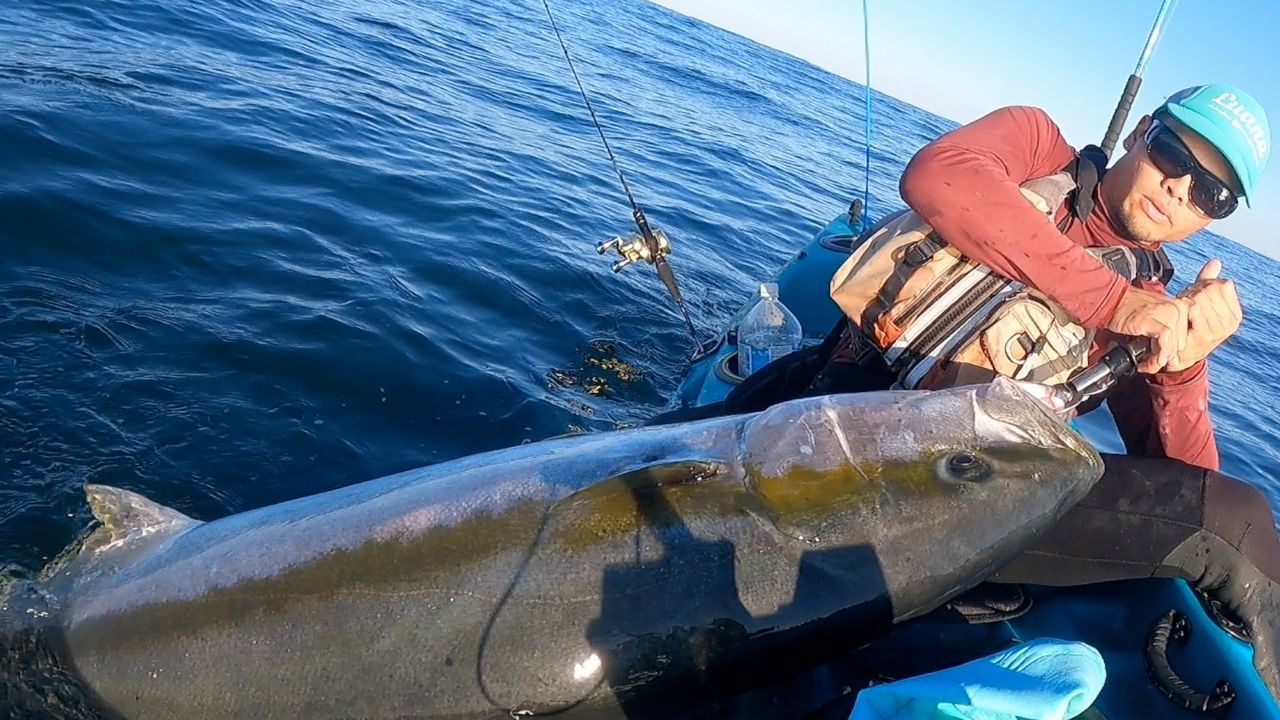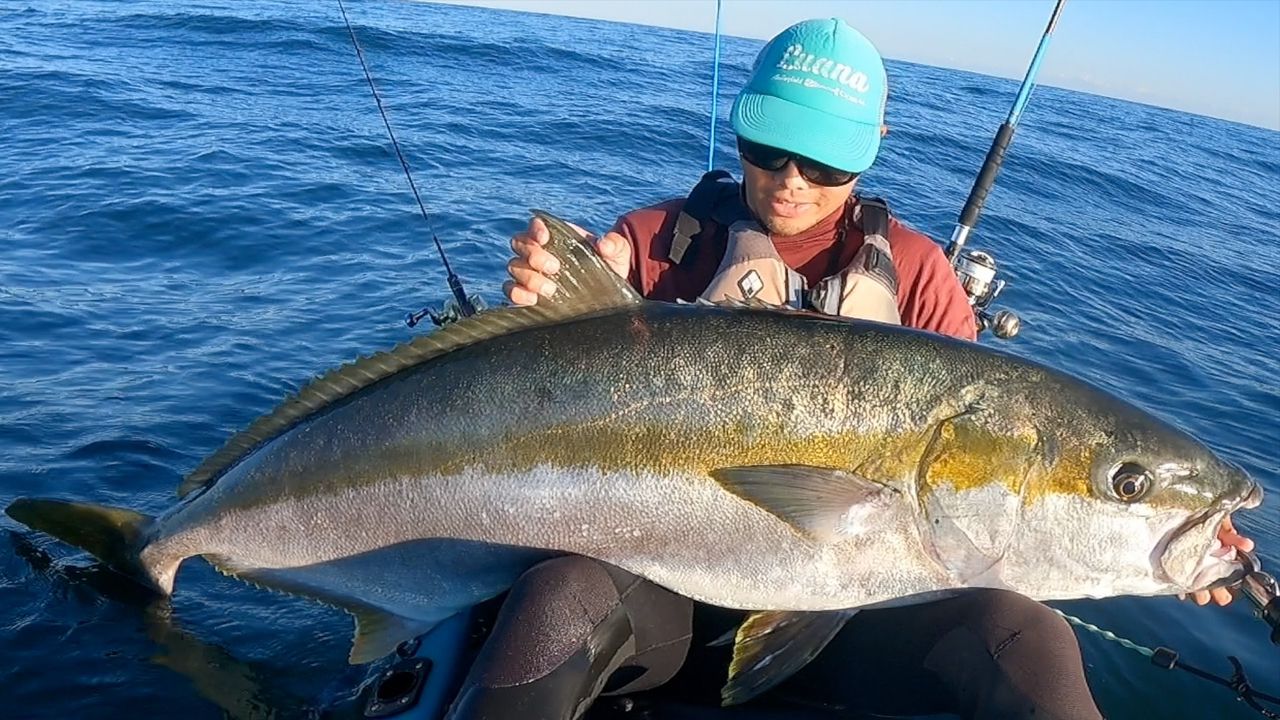 【カヤックフィッシングより41kgのヒラマサをキャッチ/ I caught a 41kg yellowtail amberjack from a kayak】
