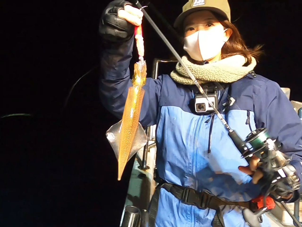 大きなイカが釣れて…♪