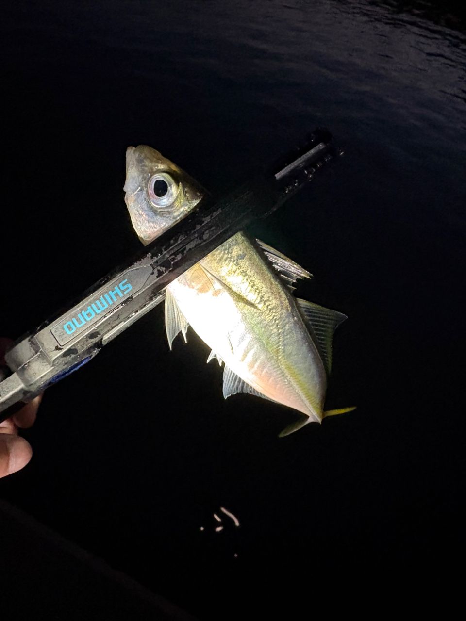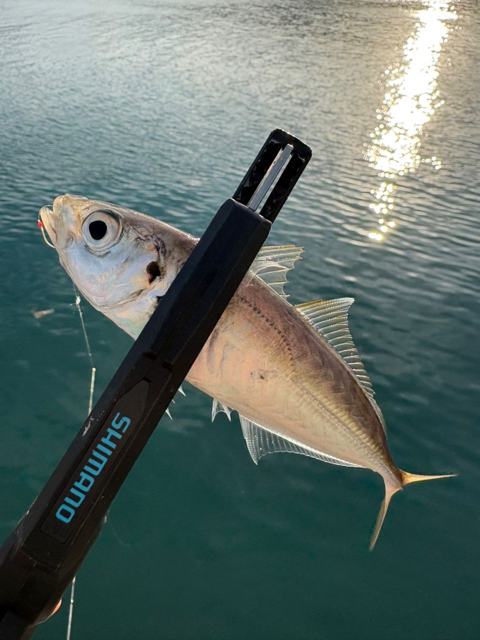 暗いなって夕まずめ、中アジ1匹釣れただけで特に何もなく終了…