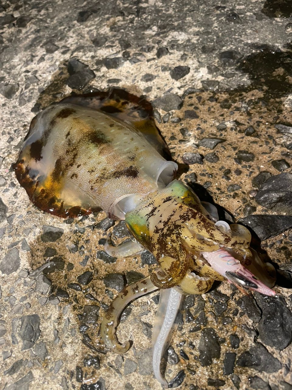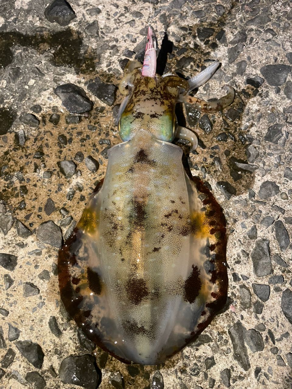こいつ釣ったあとに目の前にキロ超え現る。この子のつがいかしら🦑