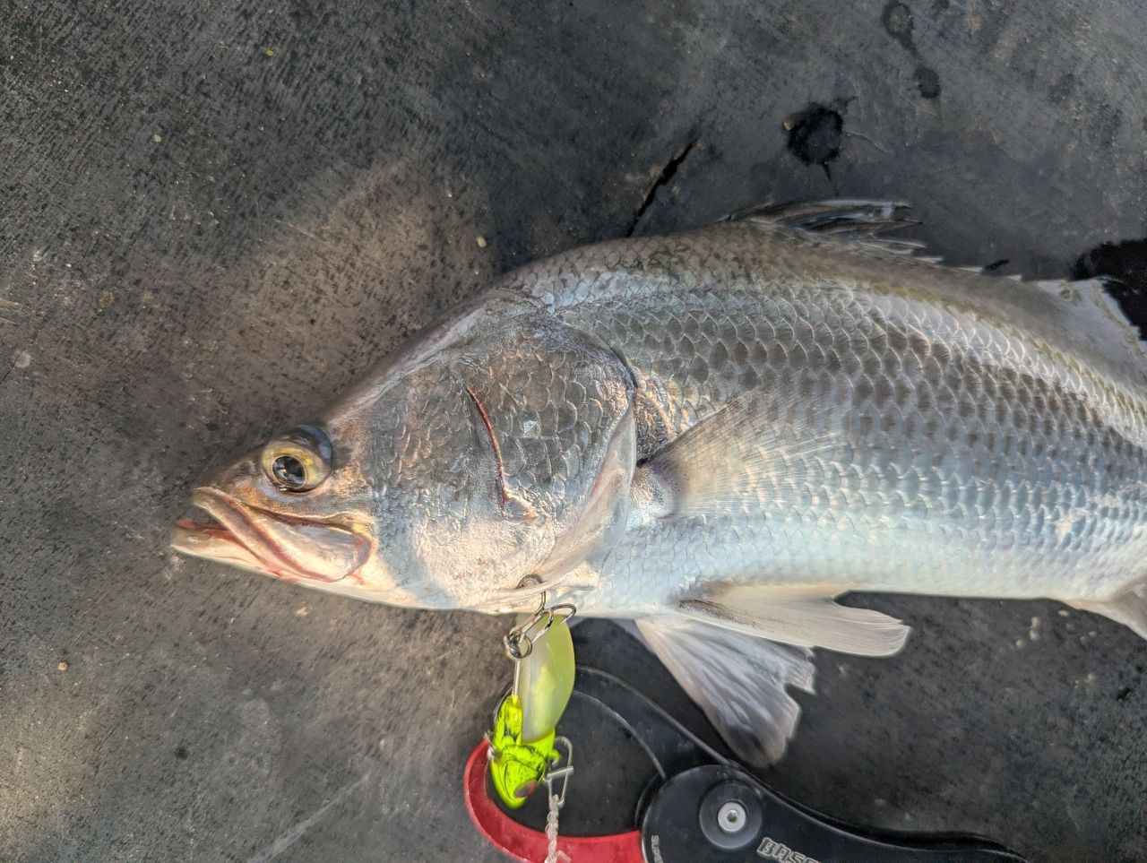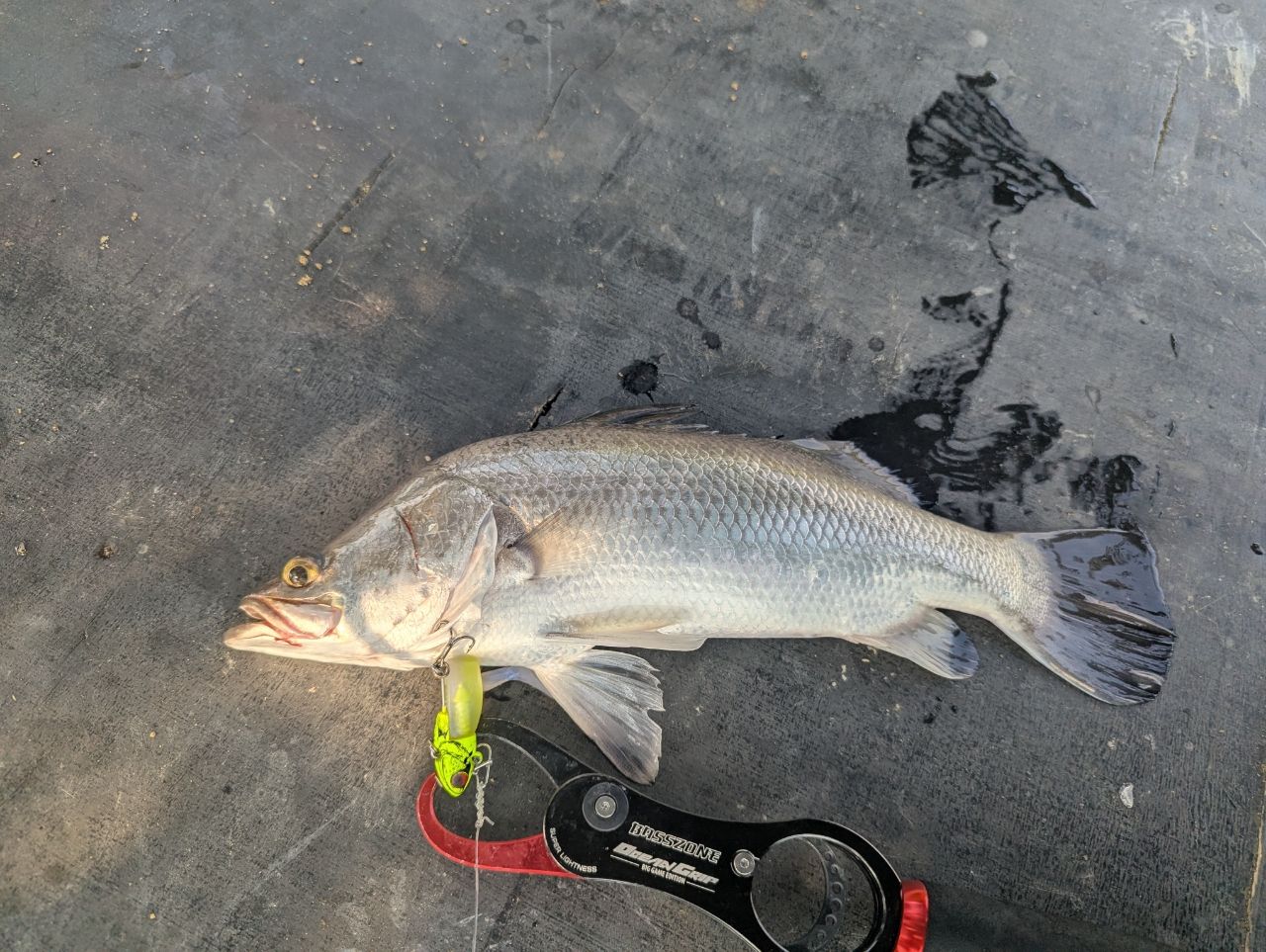 今日は当たりはするけど、針掛かりしない、そんな日でした。小さいけどバラマンディなんでこれを釣って納竿としました。