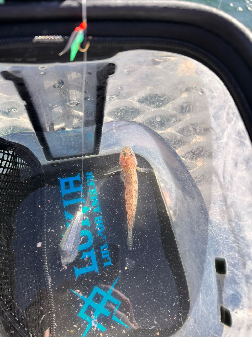夕方15:30過ぎから30分くらいアジの時間。沖桟橋の外側で周りも同様に釣れてました。朝イチで釣れたハゼ?を1日中泳がせてみたけど不発、夕方まで元気に泳いでたのでリリース。