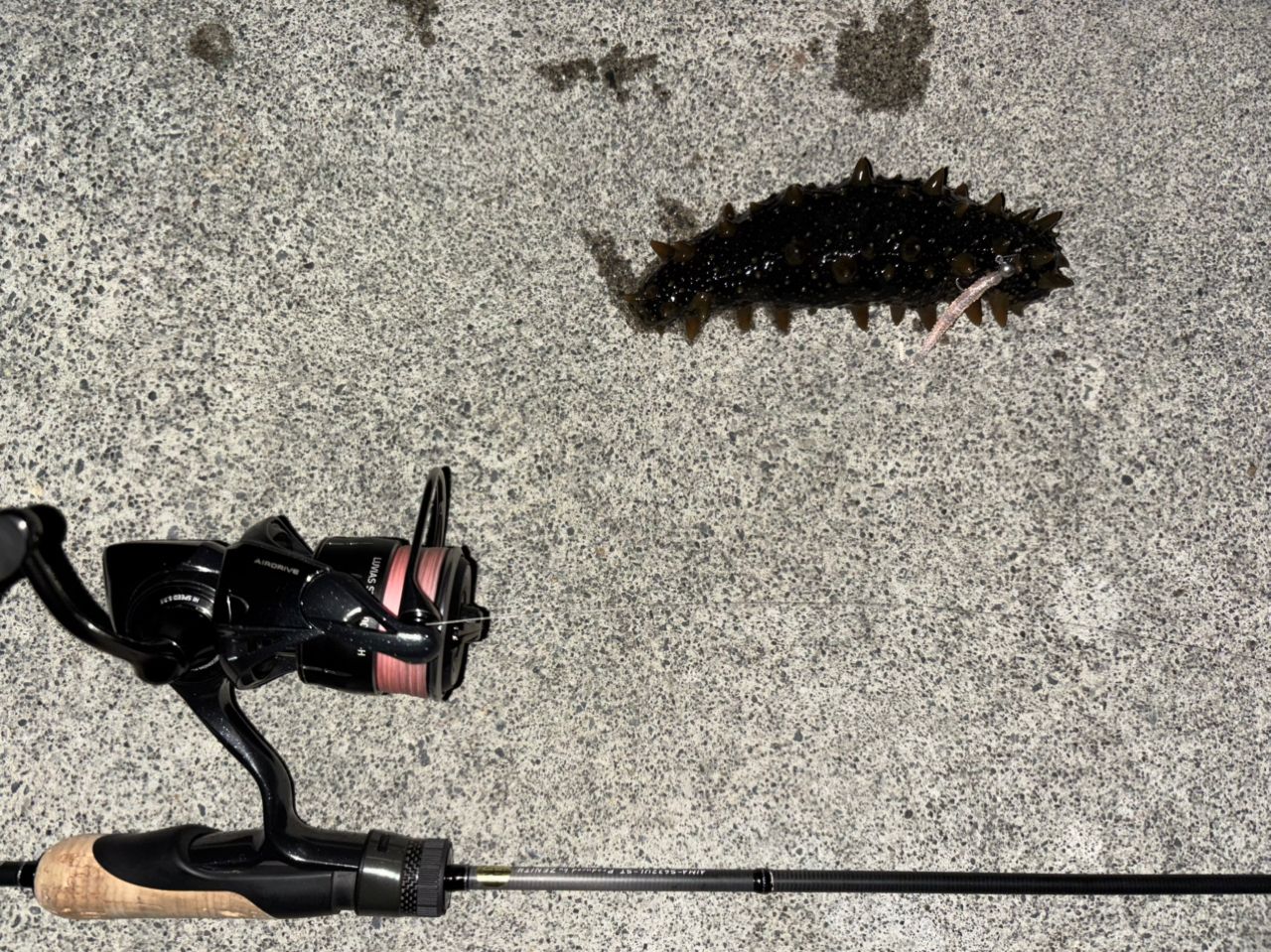 アジは釣れなくて、アジングの外道でヒラセイゴ‼️ボトム攻めてたらナマコも釣れた🥺