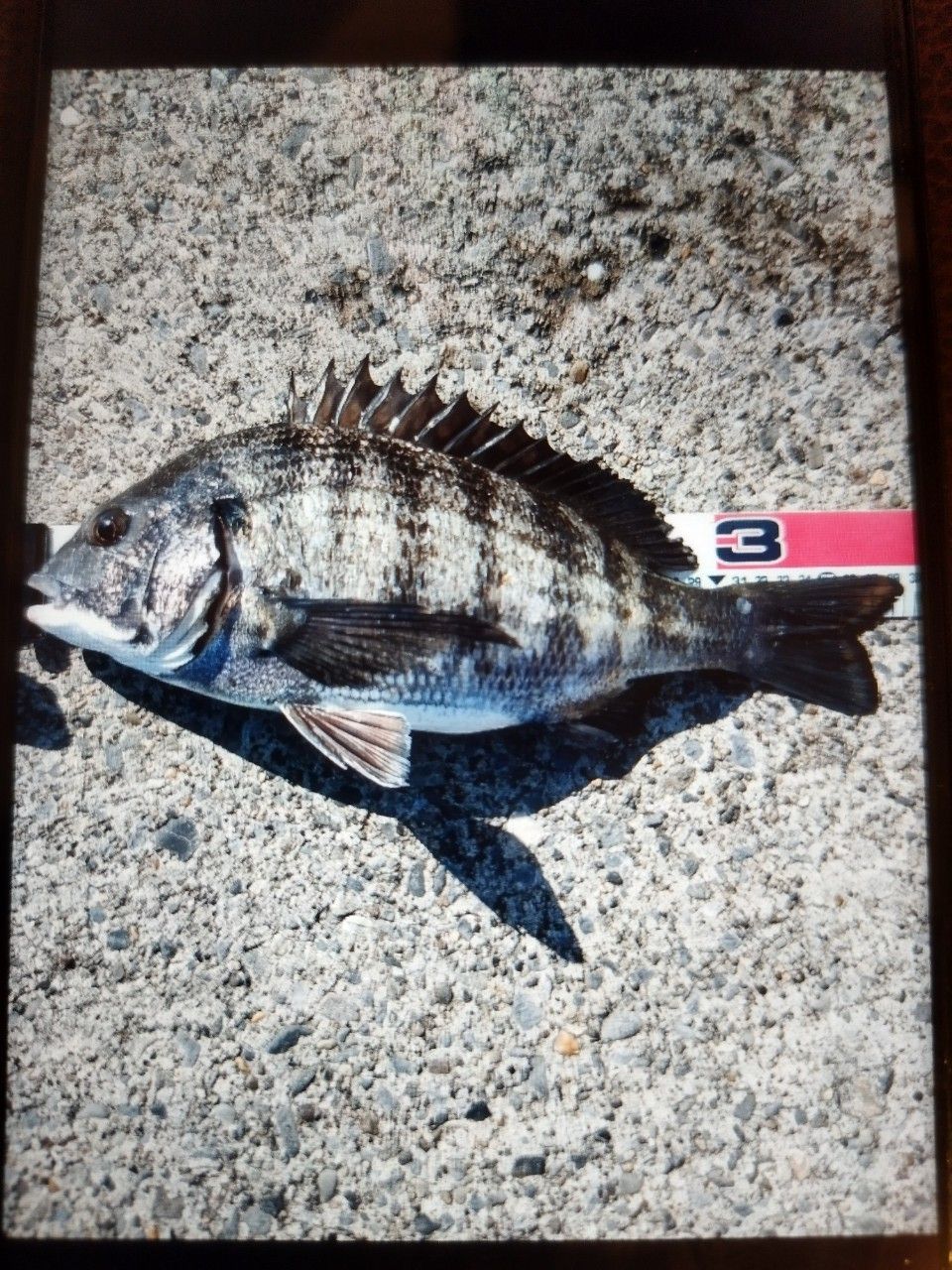 最近スマホを機種変してアングラーズを移行しようとしたらパスワード忘れて変えようとしてもなんか上手く変えられなかったのでこれからは新スマホで撮った写真を旧スマホでまた撮ってそれで投稿していこうと思います。少し画像が粗くなりますが、ご了承ください。ちなみに今回のクロダイは先週の土曜日に釣ったもので、ウキフカセでの釣果です