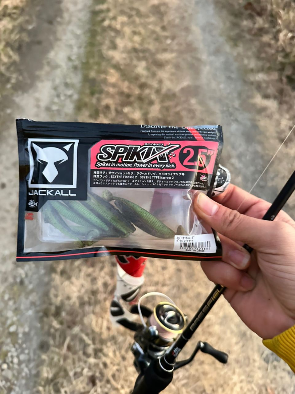 去年はシャッドで出したけど今年はジャッカルのスパイキックスで、、底取るやり方だとワームの動きが悪いため中層で早巻きしてフォールさせてたら来ました🙌