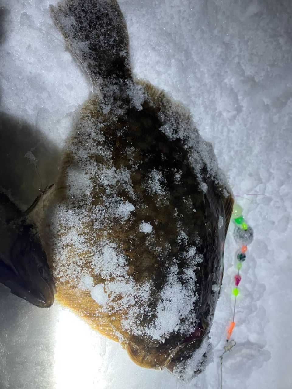 投げ竿に大きなアタリが頻繁に来るも、中々乗らない⋯針が悪いのか?でも-10℃の中、頻繁に仕掛けを変える元気がない(何しに来た)