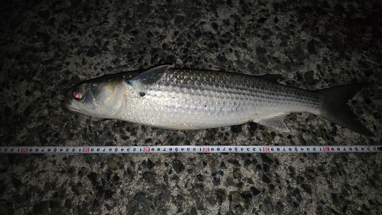 ボラはシーバスの30分前くらいにスレがかって、釣れたのでリリース