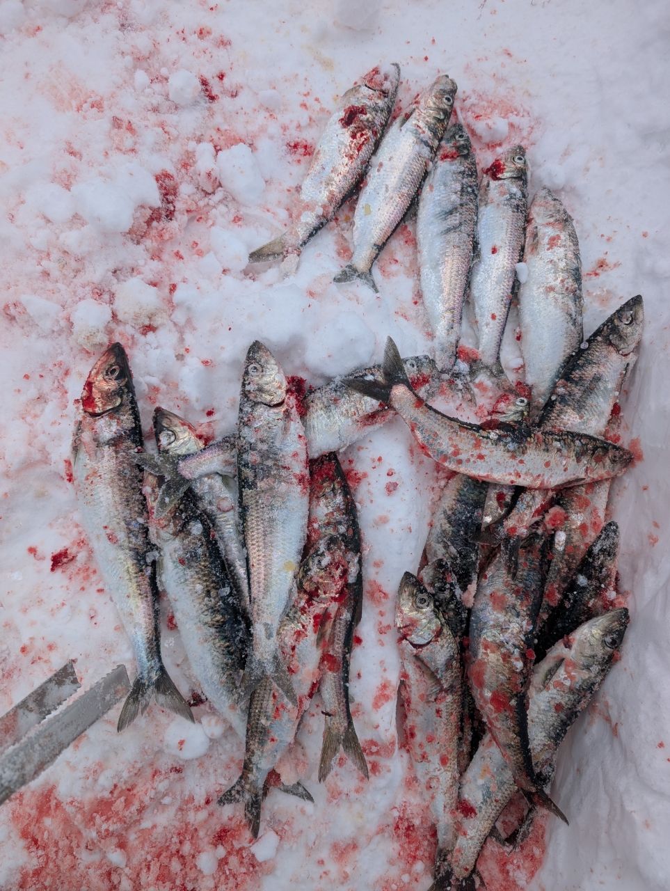 一夜干しの分は冷蔵庫入り切らないのでさばいた魚を雪に埋めてありますよ。