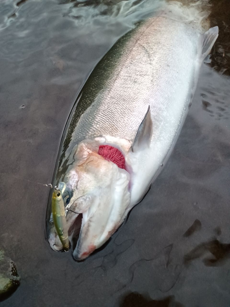 鵜にやられたのか痛々しくエラが…。