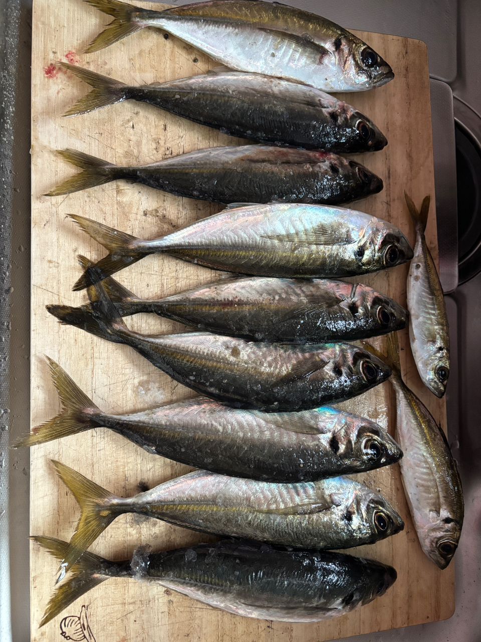 青アジと真鯵が入れ代わる?そんな事あるんだと青アジを釣ってたら、横でMさんがデカいアジをクーラーの中へ🧐