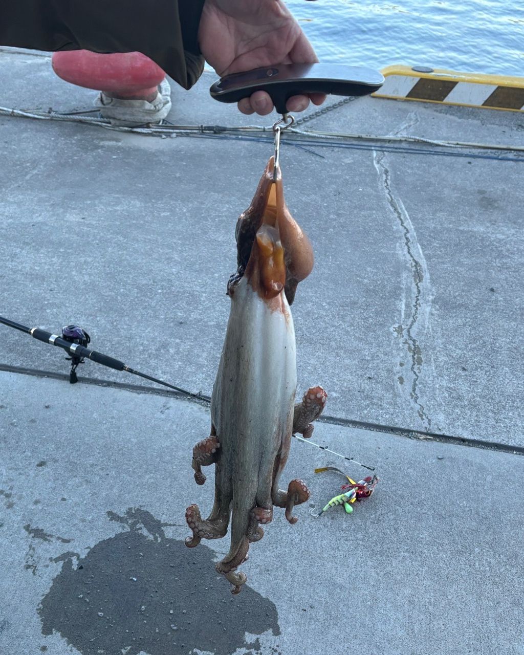 寒くてもとりあえずタコ釣りからスタート。久々にヒットしました!