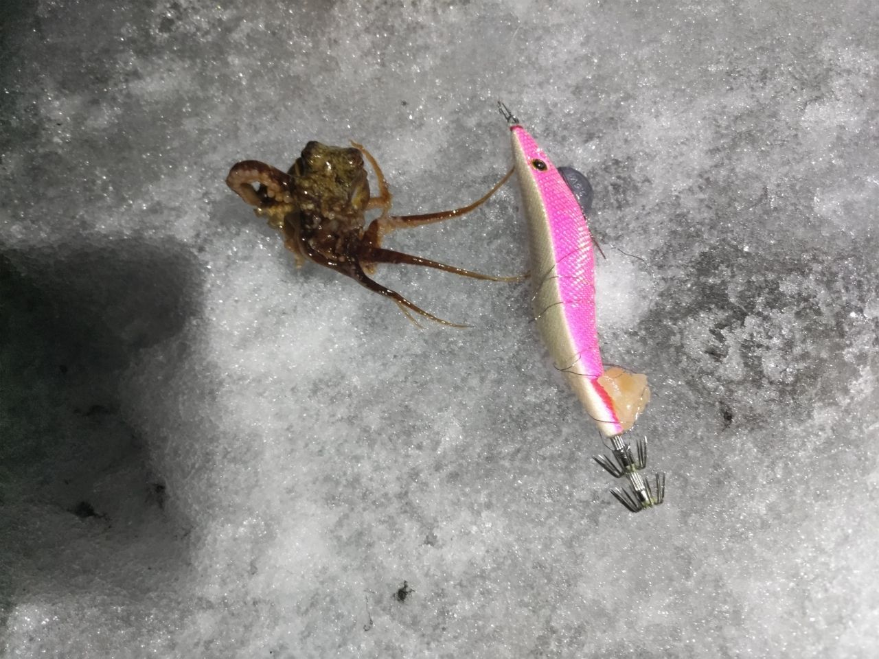 最後1時45分くらいから時合きてエギングで10杯くらいあげましたが2時30分納竿。。多分まだ横抱きで抜けたりしたのでまだ釣れそうな感じでしたが、これから気温も更に下がり路面凍結の心配もあるので潮時かなと。