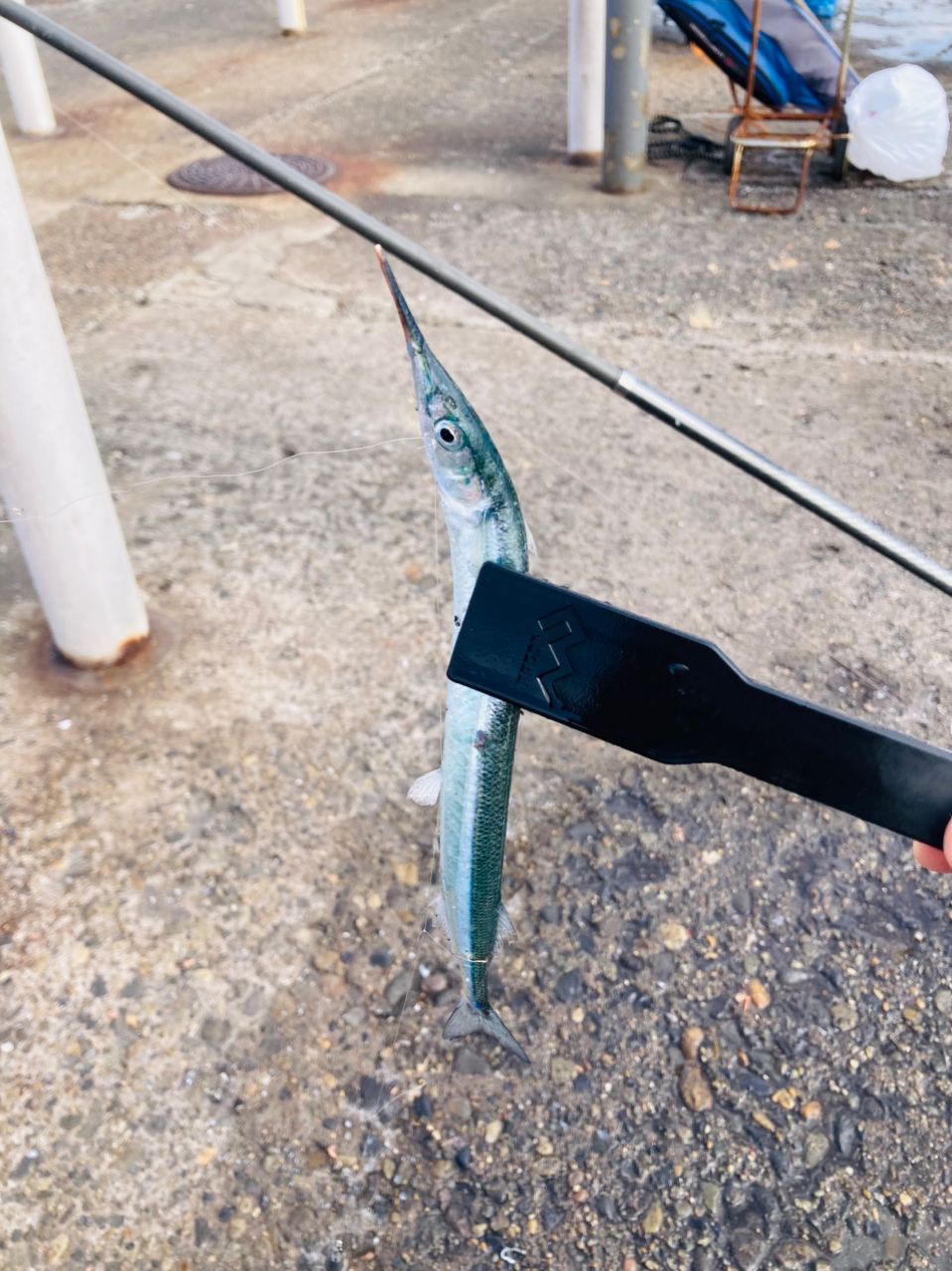 6時20分頃に到着 6番目くらいに荷物を置いて車内で待機 7時開園と思いきや冬場は8時開園😭 15分前に開門 釣り座は先端よりに構え まずはトリックサビキを準備(トリックサビキは今回が初)竿は磯竿2-450 コマセを撒くとサヨリがウヨウヨ集まってきますがなかなか掛かりません 10匹ほど釣った時に仕掛けがぐちゃぐちゃになってコマセカゴのサビキにチェンジ ショートハイパー2号7本針にオキアミSを2カ所刺し ダブルが4回ほど カラバリに掛かったのは2匹 ほとんどがエサにかかりましたがコマセを撒かないとなかなか食いません アタリがあっても乗らなかったり、乗っても途中ですっぽ抜けたり😅 13時過ぎにアタリがすくなくなったのでお昼ご飯食べたあとまわりの様子を観察に…先端付近でルアーロッドにサビキ素ばり(コマセ、付けエサなし)で爆釣している若い男性が居ました お声かけして仕掛けと釣り方を教わるとたまたま同じ仕掛けを持っていたのでさっそくマネしてみることに… 竿は持ち合わせのシーバス用96M、2500番リールPE0.6、ショートハイパーケイムラ2号(6本針)に1号錘をつけてアンダースローで10mほどキャスト、イトフケ取ってフォール中にコツッとした小さなアタリに合わせると手ごたえあり 途中でバレることなく無事キャッチ😁その後もポンポン釣れてすっかりこの釣法にハマりました コマセもいらず、エサ付けも不要 手返しが良く環境にも優しいこの釣法を皆さんもぜひ試してみてください(最後まで長文読んでいただきありがとうございました)