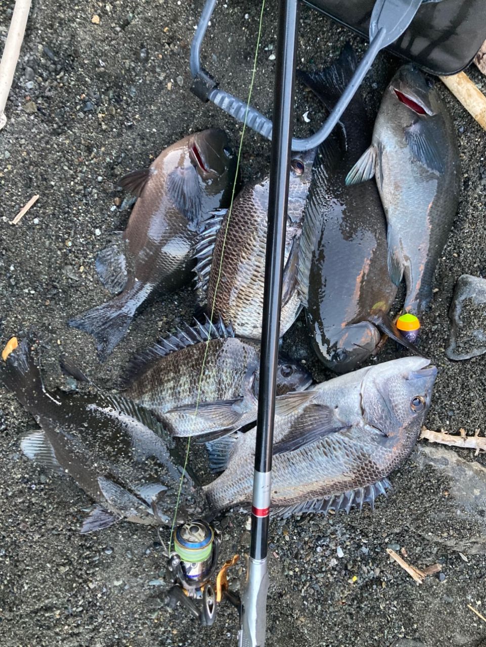 夕方にかけて潮位も上がり、波っけも出てきた頃よりメジナ・黒鯛が当たりそこそこの個体を合計7枚程取り込み終了…