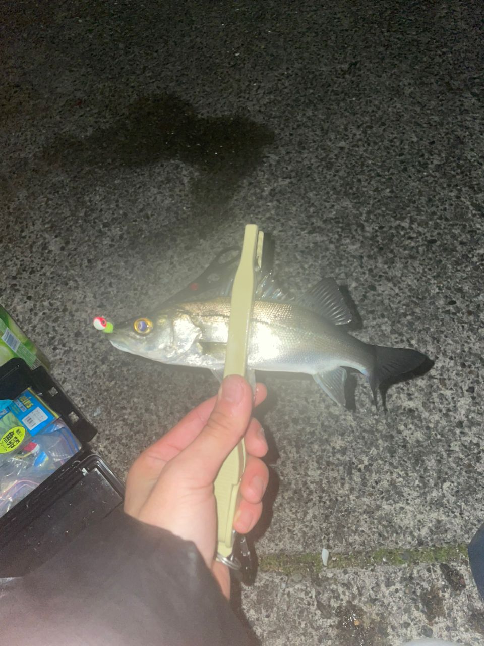 アジングで初めてスズキつれた!