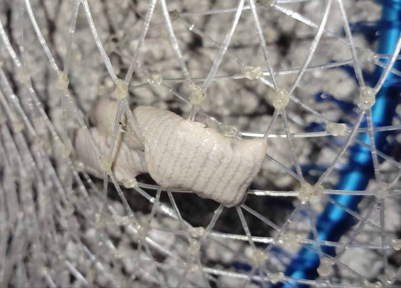しかしボトムシーバスのお約束吸血大型ヒダヒルが背中辺りにガッツリパラサイト【寄生】して出血🩸して気の毒なので、先にネットの中でプライヤーで引っ剥がしてあげました。🩸🩹