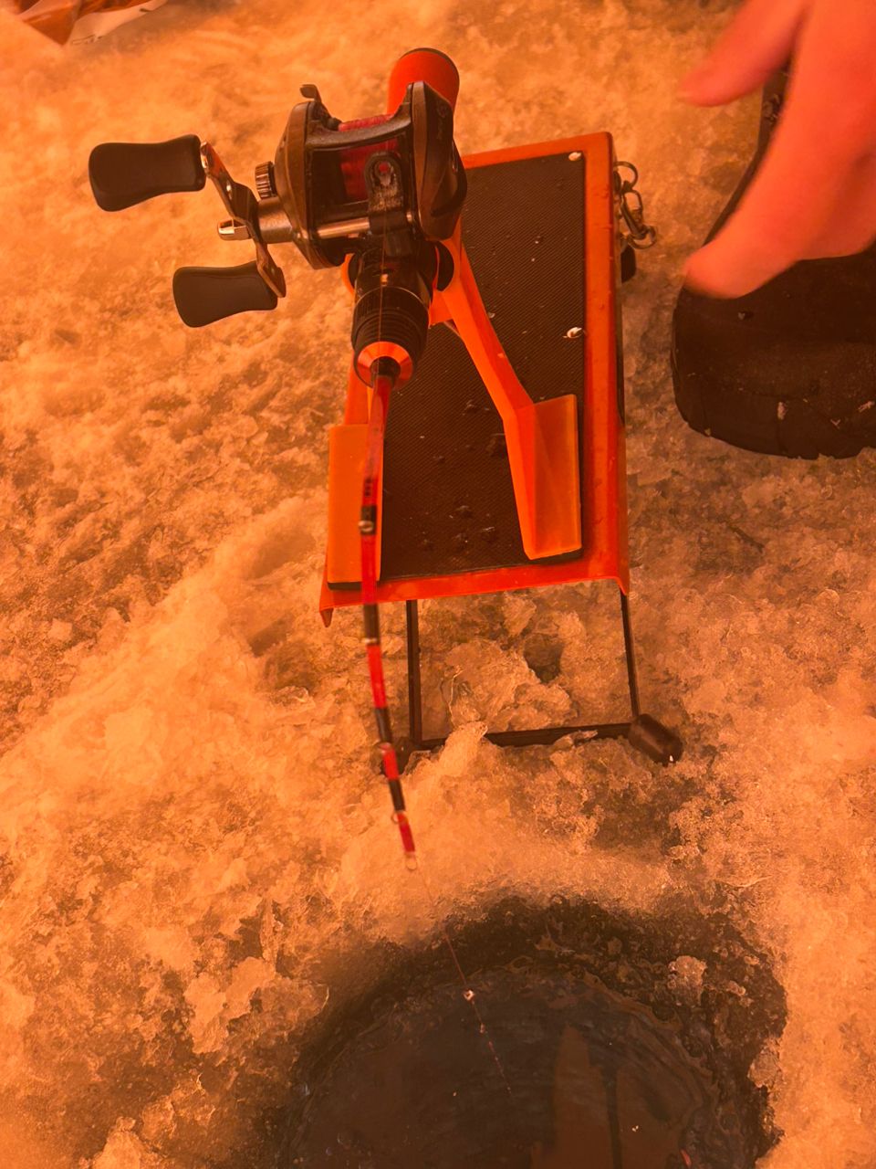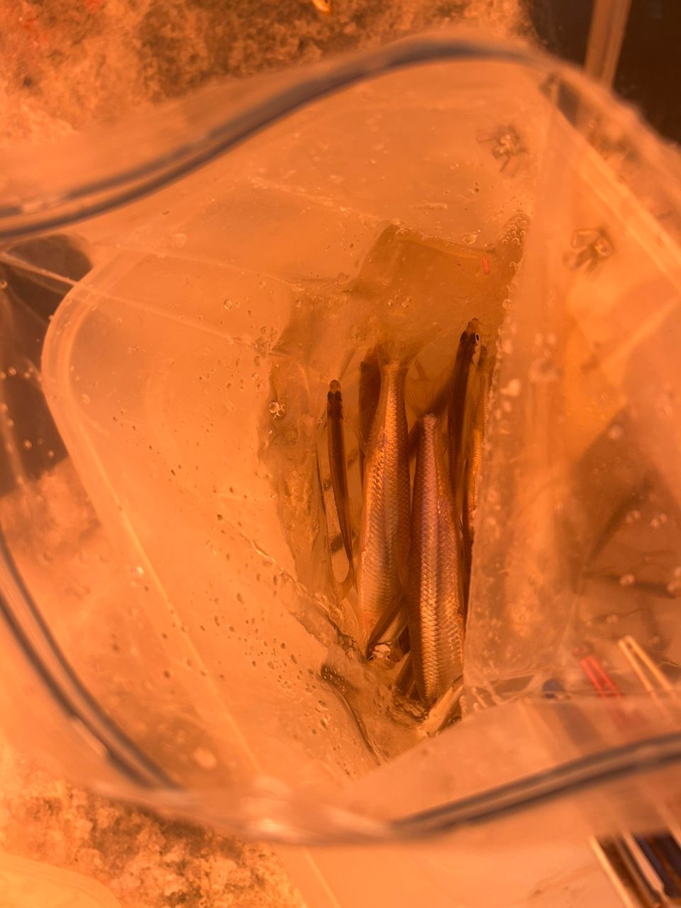 石狩にてわかさぎ釣り大小さまざまなサイズ。底の方で大きいのがかかる方が多いかも!^_^氷の厚さ充分なんでしばらく楽しめそうです。