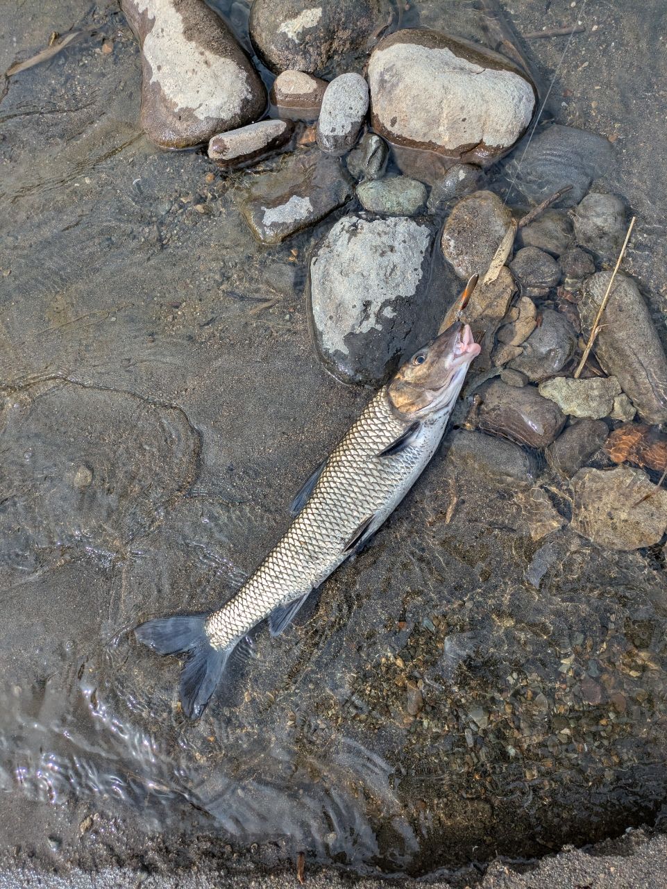 - 碓氷川で釣り開始