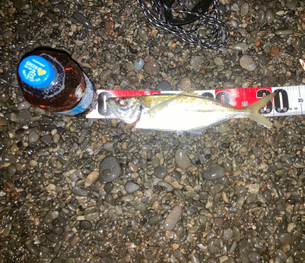 カゴ釣りでの釣果。タナは2ヒロ。1匹だけ尺アジきました