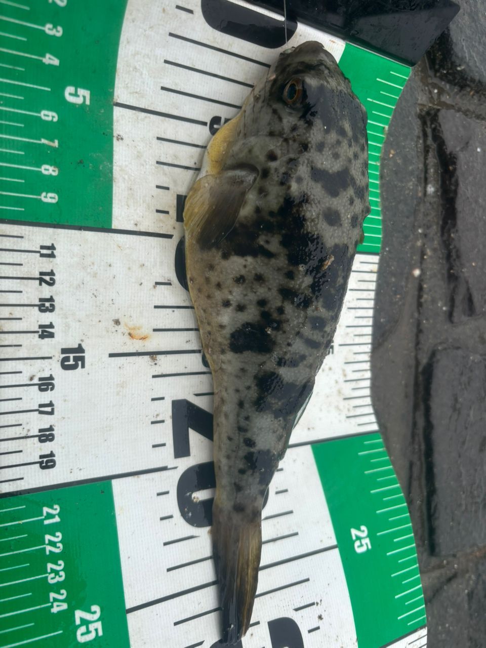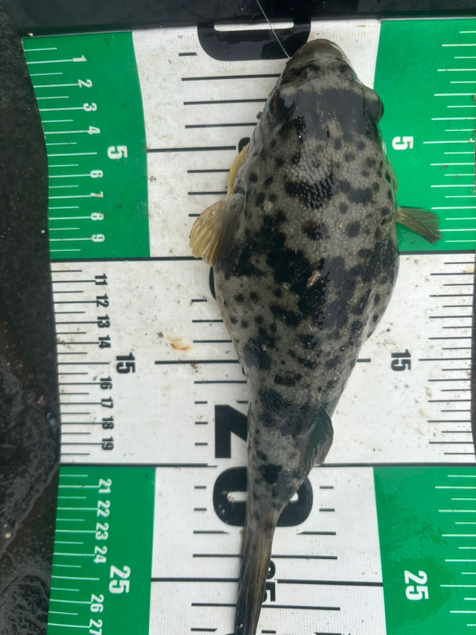 西から止んでくるかなと思って初フィールド!!昼くらいから雨が上がってすぐにヒガンフグ!なかなかの引きと重さなのでサイズ測っちゃった!笑