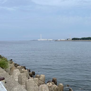 息子と2人、駐車場から片道徒歩10分くらい?中山温排水の釣り場に到着直後、息子に「う○ち出そう」って言われた時。orz